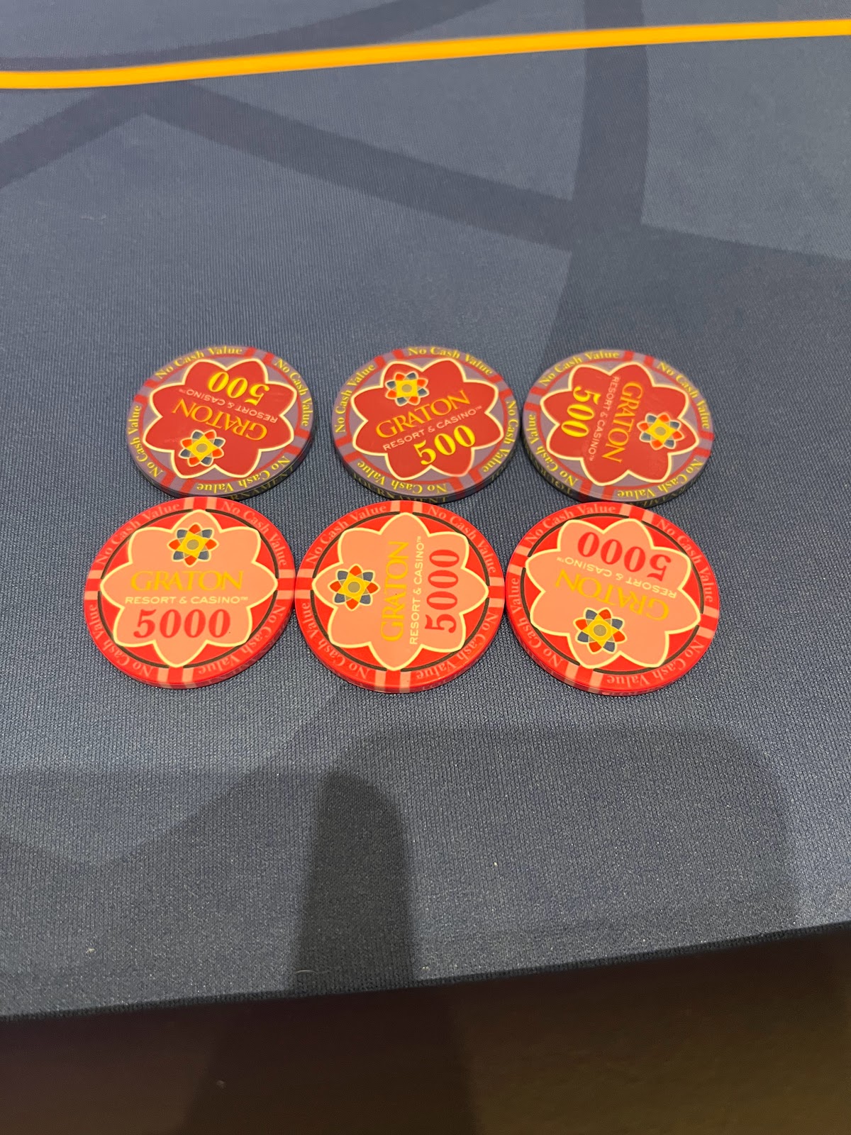 We got 70 entrants and first place was $5,530 which I think is a pretty good turnout for an event of this nature. I did take a bunch of pictures of my chips...